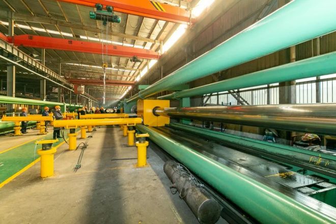 嚴格工藝把關是關鍵。對于直徑在273毫米至508毫米的無縫鋼管,德新鋼管采用帶坯委外加工方式。根據訂單委托最優機組軋制原管,德新鋼管再自行完成熱處理、精整和后道工序。對于直徑大于508毫米、徑壁比大于25的大口徑薄壁無縫鋼管,德新鋼管委托寶鋼、天淮、誠德等企業穿軋定徑后,再采用中頻熱擴工藝擴制,結合冷拔、熱處理、精整等能力最終完成成品?!斑@種創新的生產方式,充分利用德新強大的熱擴、冷拔、熱處理和精整能力,實現了‘鋼坯—原管—成品’產品全鏈質量管控,確保成品鋼管長度長、品質佳,部分產品因采用高等級鋼坯加工,成為名副其實的‘超標管’;同時,有效縮短原料采購周期,滿足客戶交貨期要求,最快可30天內快速交貨。”陳冬介紹道。