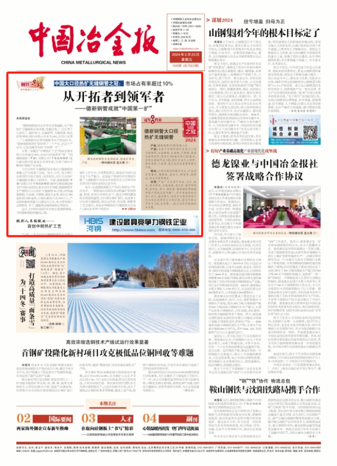 近日,《中國冶金報》采訪組走進德新鋼管,尋找德新鋼管的摘冠之路。