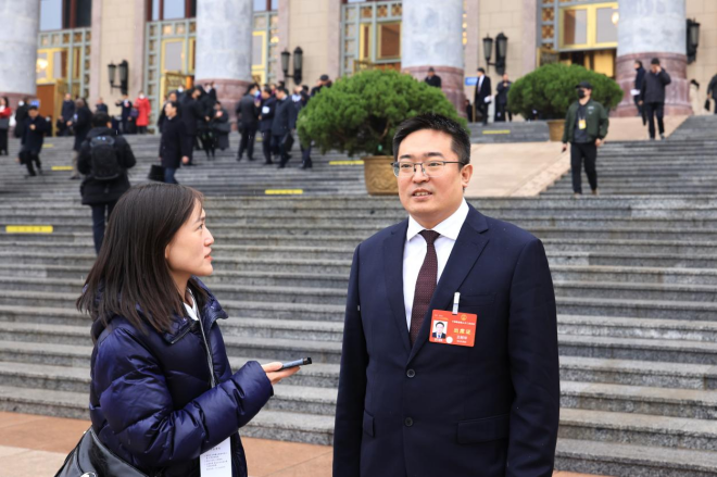 李建宇代表在步出會(huì)場時(shí)接受中國冶金報(bào)社兩會(huì)報(bào)道組記者樊三彩的現(xiàn)場采訪