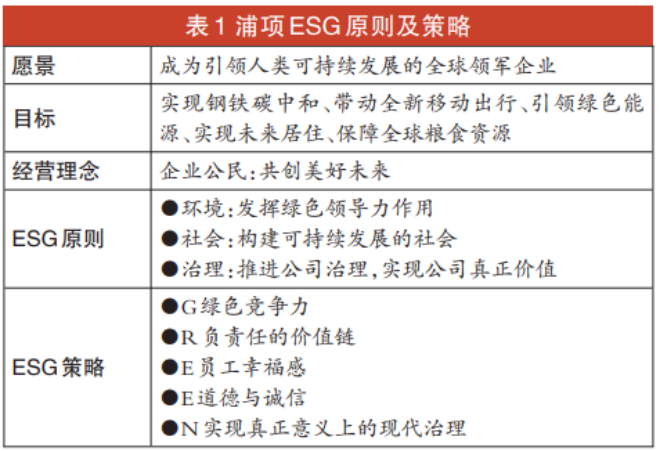 為成為“引領人類可持續發展的全球領軍企業”并踐行五大“企業公民”品牌活動,浦項以“企業公民”經營理念為指導,高度重視ESG管理,致力于發揮環保方面的引領作用、構建可持續發展的社會共同體、加強公司治理,從而實現可持續發展、提升企業價值。浦項ESG原則及策略如表1所示。