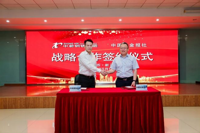 5月16日,中國冶金報社與中新鋼鐵在江蘇徐州簽訂戰略合作協議。中國冶金報社黨委書記、社長范鐵軍與中新鋼鐵集團黨委書記、副董事長李明坦代表雙方簽約。雙方圍繞鋼鐵行業運行趨勢、品牌建設等進行了深入交流。根據協議,雙方將在品牌塑造、新產品宣傳、新技術引進、宣傳片制作、信息咨詢等方面進行深入全面合作。中新鋼鐵集團執行總裁王越;中國冶金報社社長助理兼經濟發展中心主任、卓越品牌促進中心主任陳曉莉,經濟發展中心視頻部主任姚翰昇等參加簽約儀式。