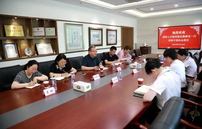 5月23日上午,森特士興集團股份有限公司(以下簡稱森特股份)副總裁、創新事業部總經理郝冰一行到訪中國冶金報社,與中國鋼鐵工業協會副秘書長,中國冶金報社黨委書記、社長范鐵軍圍繞分布式建筑光伏一體化在鋼鐵行業的應用,以及協同合作共推行業高質量發展進行了座談交流。