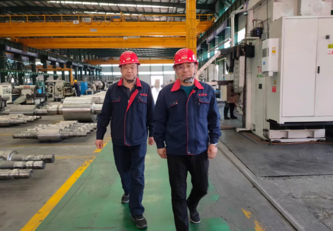 朝陽聯強軋輥有限公司總經理孫建勛(右)在車間視察
