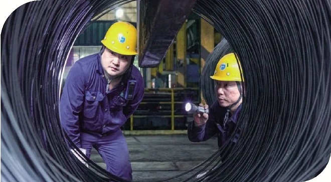 圖為萍安鋼鐵員工嚴格管控產品質量。