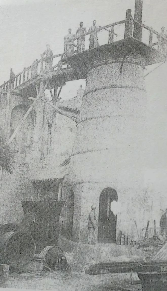該煉鐵廠高爐參照了1943年延安軍工局煉鐵部建設的大砭溝木炭小高爐的設計方案,設計了爐高8.2米、容積為4.38立方米、日產1噸的小高爐;同時,為提高高爐冶煉溫度,高爐設計了2臺75千瓦的空氣壓縮機和熱風爐;1947年5月開始施工,1948年5月完工,1948年6月15日開始點火投產,1948年7月就生產出含硅4%~7%的高硅灰口鐵,并達到設計日產1噸的水平,最高日產達到1.9噸。