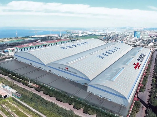 圖為鞍鋼工程技術(shù)公司鲅魚圈原料廠棚化封閉項(xiàng)目鳥瞰。