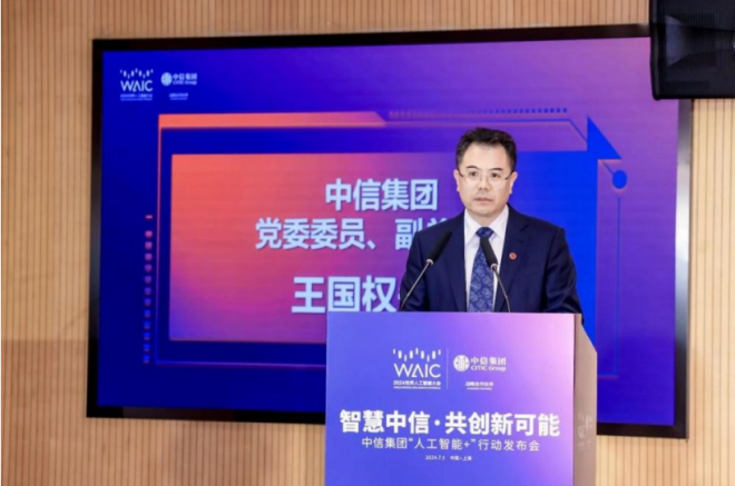 王國(guó)權(quán)以“縱深推進(jìn)‘人工智能+’ 加快發(fā)展新質(zhì)生產(chǎn)力”為題作主旨發(fā)言。他表示,中信集團(tuán)將積極落實(shí)國(guó)家“人工智能+”行動(dòng)要求,以成為中央企業(yè)智能化發(fā)展“排頭兵”、綜合性企業(yè)集團(tuán)“AI+”行動(dòng)引領(lǐng)者和智能產(chǎn)業(yè)生態(tài)建設(shè)者為目標(biāo),以大模型為抓手,按照“1234”的總體思路全面推進(jìn)“人工智能+”行動(dòng)。即緊扣人工智能與產(chǎn)業(yè)發(fā)展深度融合“一條主線”,堅(jiān)持場(chǎng)景驗(yàn)證和能力建設(shè)“兩手抓”,分“三步走”實(shí)現(xiàn)戰(zhàn)略目標(biāo)。第一階段,打造一批示范應(yīng)用,建立一批優(yōu)質(zhì)行業(yè)數(shù)據(jù)集,建成集團(tuán)智算中心;第二階段,拓展應(yīng)用場(chǎng)景的廣度和深度,形成超過50個(gè)深度應(yīng)用,訓(xùn)練若干個(gè)特色行業(yè)大模型;第三階段,構(gòu)建跨行業(yè)、開放合作的人工智能創(chuàng)新生態(tài),力爭(zhēng)場(chǎng)景應(yīng)用和行業(yè)大模型達(dá)到國(guó)內(nèi)領(lǐng)先水平。在實(shí)施路徑上,重點(diǎn)從強(qiáng)化需求導(dǎo)向和應(yīng)用牽引、打造“1+N”大模型生態(tài)、超前布局算力網(wǎng)絡(luò)建設(shè)、筑牢防控一體安全屏障等四方面推進(jìn)落地。