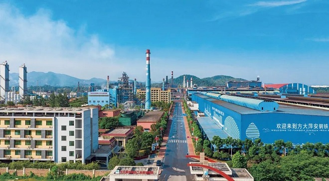 圖為方大萍安鋼鐵廠區門口鳥瞰。