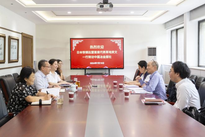 7月19日,日本鐵鋼連盟北京代表處首席代表草地資文一行到訪中國冶金報社,與中國冶金報社黨委書記、社長范鐵軍進行座談交流。雙方圍繞鋼鐵行業(yè)運行態(tài)勢、《中國經(jīng)濟與日本企業(yè)2024年白皮書》(以下簡稱《白皮書》)編寫情況等話題展開交流。