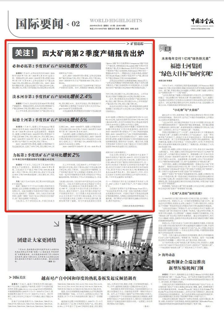 淡水河谷在報告中指出,第2季度強勁的業(yè)績表現增強了其實現全年3.10億噸~3.20億噸鐵礦石產量目標的信心。