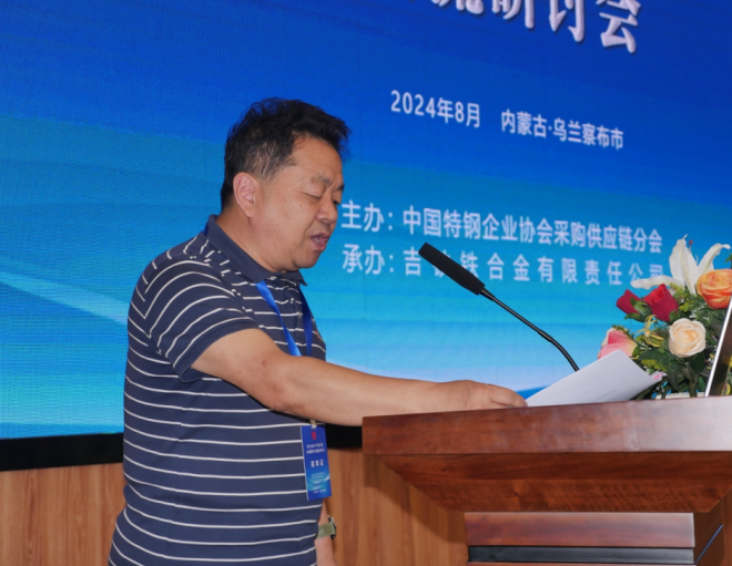 郭軍在致辭中表示,近年來,隨著國家西部大開發戰略的深入推進,烏蘭察布鐵合金產業得到了長足發展。吉鐵鐵合金依托地域優勢,堅持創新驅動,不斷提升產業技術水平和市場競爭力,逐步形成集采礦、冶煉、加工于一體的完整產業鏈。希望通過本次會議,加強特鋼企業與鐵合金生產企業、貿易企業之間的交流合作,進一步促進雙方深挖合作潛力、深化合作層次、拓展合作領域,在提高特鋼企業及特鋼采購供應鏈企業市場競爭力的同時,推動烏蘭察布鐵合金產業向更高質量繁榮發展。