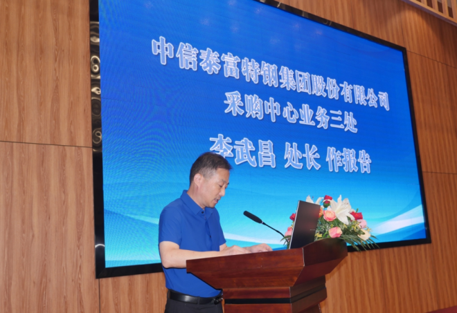 圖為中信泰富特鋼集團采購中心業務三處處長 李武昌做報告