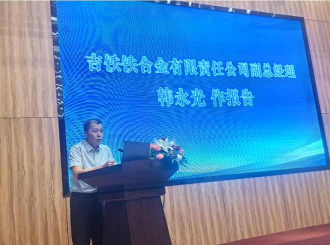 圖為吉鐵鐵合金有限責任公司副總經理 韓永光做報告