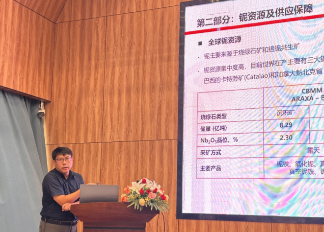 圖為中國礦產有限責任公司特鋼合金部總經理 葉超做報告 (溫曉霞 攝影)