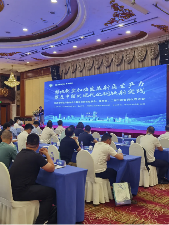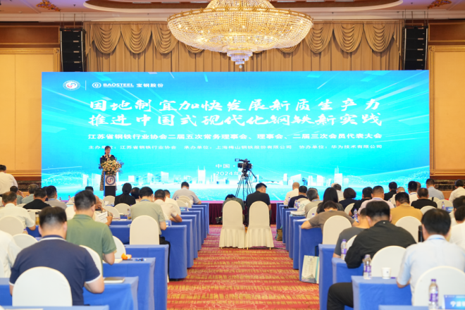 8月13日,“因地制宜加快發展新質生產力,推進中國式現代化鋼鐵新實踐”大會暨江蘇省鋼鐵行業協會二屆五次常務理事會、理事會、二屆三次會員代表大會在南京召開。此次會議由江蘇省鋼鐵行業協會主辦,上海梅山鋼鐵股份有限公司承辦。與會嘉賓和參會代表齊聚一堂,就如何因地制宜、找準定位,發揮自身技術、資源優勢,探索一條具有中國特色的現代化鋼鐵發展之路進行了交流。