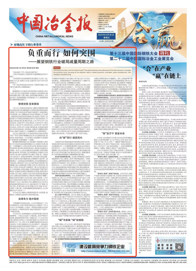 鞍鋼集團朝陽鋼鐵打造“極致集約”管控模式,借助數字化手段培育成本透明的算賬文化;首鋼深化改革,推進“一引領兩融合”(以技術創新為引領,推動技術創新與管理創新和商業模式創新深度融合),推動技術創新成為首鋼第一競爭力,以技術創新帶動全面創新,實現發展質量向更高效率、更有韌性、更可持續轉變;河鋼加大市場化改革力度,著力全面釋放“四大新區”優勢,進一步貼近市場、貼近客戶,在降成本降費用、科技創新、綠色低碳、 國際化發展等方面實現新突破;沙鋼圍繞“打造世界一流鋼鐵強企”,全面推進向優特鋼轉型;中信泰富特鋼深化“極致成本、極致效率”攻關,在日益嚴峻的市場形勢下依然跑贏大盤;山鋼錨定扭虧增盈、歸母為正根本目標,堅持生產經營+資本運營“雙輪驅動”,聚力打造發展方式新、公司治理新、經營機制新、布局結構新的“四新”現代新國企;包鋼深化經理層任期制契約化管理,加快形成反應靈敏、運行高效、充滿活力的市場化經營機制;建龍通過導入成熟先進的管理體系,幫助西寧特鋼成功“摘帽”;酒鋼以改革深化提升行動為引領,完善公司治理,上半年在深入推進改革深化提升行動中完成年度任務44項,實現利潤17.1億元,同比增長35.8%;柳鋼將2024年定為全面推進提質增效的深化之年,提出做好向“改”提質、向“轉”求存、向“新”創效、向“海”圖強、向“外”突破、向“優”發展的“六篇文章”,全面構建精益運營管理體系,全力構建現代化產業體系……
