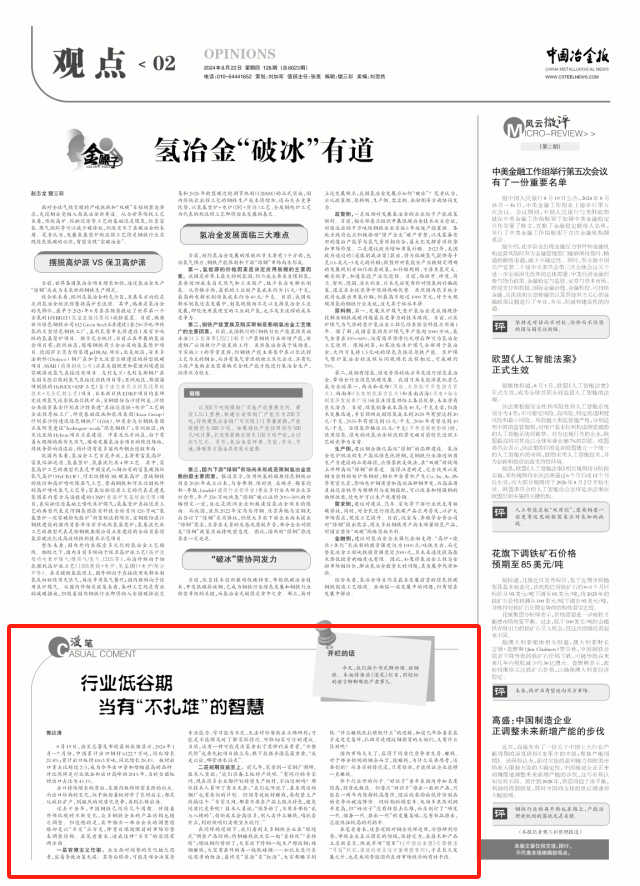 在筆者看來,這套邏輯對鋼企同樣適用,冷靜研判形勢,審視企業(yè)真正擅長的領域,保持定力,在技術和產品上求新求變,做成單項“冠軍”(《中國冶金報》長期推出“尋冠”欄目,報道的就是這方面典型案例),才是長久發(fā)展之計,也是共同營造國內良好市場秩序的有效手段。(郭達清)