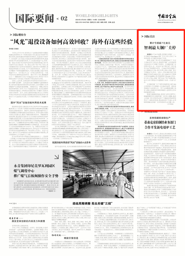 9月16日凌晨,智利最大的鋼廠——瓦奇帕托(Huachipato)鋼廠正式關停,結束了74年的運營,對當地經濟造成了沖擊。