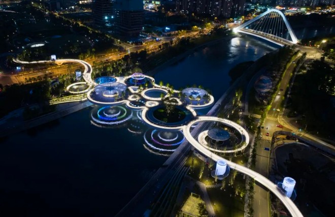 此外,五冶鋼構(gòu)還打造了一大批城市景觀橋梁和網(wǎng)紅打卡地,包括全國(guó)首座多元場(chǎng)景人行天橋——交子之環(huán)、國(guó)內(nèi)首座莫比烏斯環(huán)異形大橋——五岔子大橋、四川首個(gè)多場(chǎng)景蓮葉造型慢行橋——交子人行橋和首創(chuàng)溫度階梯曲線控制技術(shù)——錦尚大橋……