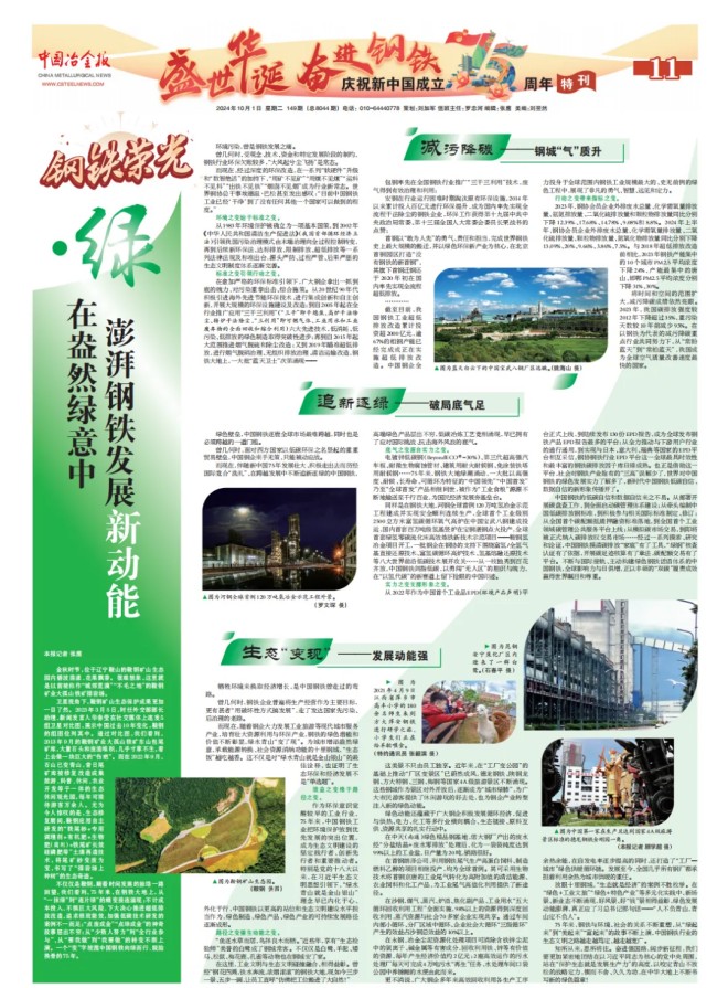 75年來,鋼鐵與環境、社會的關系不斷重塑,從“綠起來”到“美起來”“富起來”的故事不斷上演,中國鋼鐵行業的生態文明之路越走越篤定、越走越寬廣。