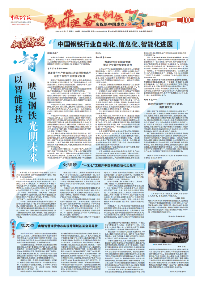 智能化是當今鋼鐵工業轉型升級和高質量可持續發展的主題之一。新中國成立75年來,伴隨著中國鋼鐵工業由小到大、由弱到強,智能化呈現從生產裝備自動化、管理信息化到智能制造的不同層次,為中國鋼鐵工業發展做出了應有的貢獻。