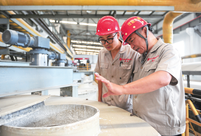 張文斌大師與團(tuán)隊成員進(jìn)行技術(shù)研討。(包鋼 供圖)