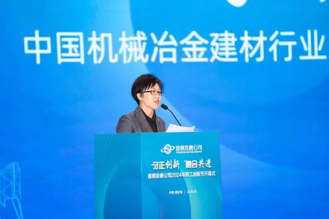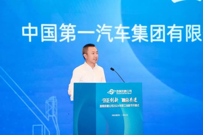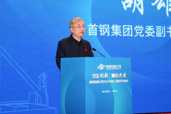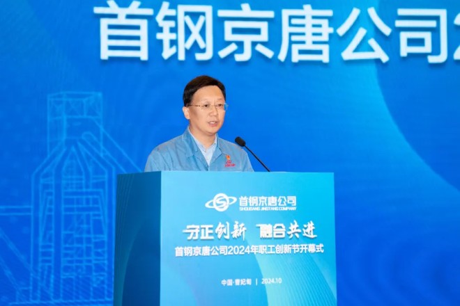 首鋼京唐公司黨委書(shū)記、董事長(zhǎng)李明致歡迎詞。他表示,首鋼京唐公司始終堅(jiān)定“四個(gè)一流”目標(biāo)定位,把創(chuàng)新擺在首要位置,作為核心要素,以技術(shù)創(chuàng)新帶動(dòng)全面創(chuàng)新、推動(dòng)產(chǎn)品結(jié)構(gòu)不斷升級(jí)、綠色低碳持續(xù)引領(lǐng)、運(yùn)營(yíng)質(zhì)量大幅改善、人才隊(duì)伍更具活力。在創(chuàng)新發(fā)展進(jìn)程中,上級(jí)工會(huì)組織搭建了廣闊平臺(tái),行業(yè)兄弟單位之間積極交流互動(dòng),這些都為京唐創(chuàng)新活動(dòng)的開(kāi)展拓寬了邊界,注入了動(dòng)能。首鋼京唐將牢牢把握創(chuàng)新之勢(shì),堅(jiān)定創(chuàng)新自信,以創(chuàng)新賦能高端化、智能化、綠色化發(fā)展,因地制宜加快打造新質(zhì)生產(chǎn)力。