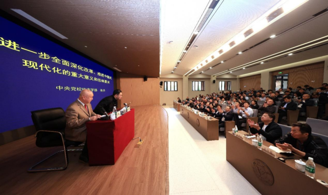 為了學(xué)習(xí)貫徹二十屆三中全會(huì)精神,會(huì)議特別邀請(qǐng)中央黨校(國(guó)家行政學(xué)院)經(jīng)濟(jì)學(xué)部教授張開作了題為《進(jìn)一步全面深化改革、推進(jìn)中國(guó)式現(xiàn)代化的重大意義和總體要求》的專題講座,他從進(jìn)一步全面深化改革的重要性和必要性、指導(dǎo)思想、總目標(biāo)、原則等方面,全面系統(tǒng)、深入淺出地對(duì)黨的二十屆三中全會(huì)精神進(jìn)行了講解和輔導(dǎo)。