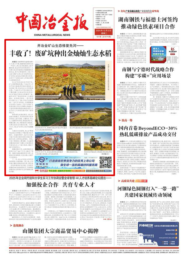 11月28日早晨,隨著現場指揮員的一聲指令,兩臺農用收割機立即開鐮收割,臨近的村民和現場的工人們都興高采烈地圍在彩旗獵獵的水稻田邊,情不自禁地歡呼:豐收了!這是馬鋼礦業南山礦在廢棄的東山礦坑種出金燦燦莊稼的真實場景,此舉開了全國冶金礦山環境治理和生態修復的先河。