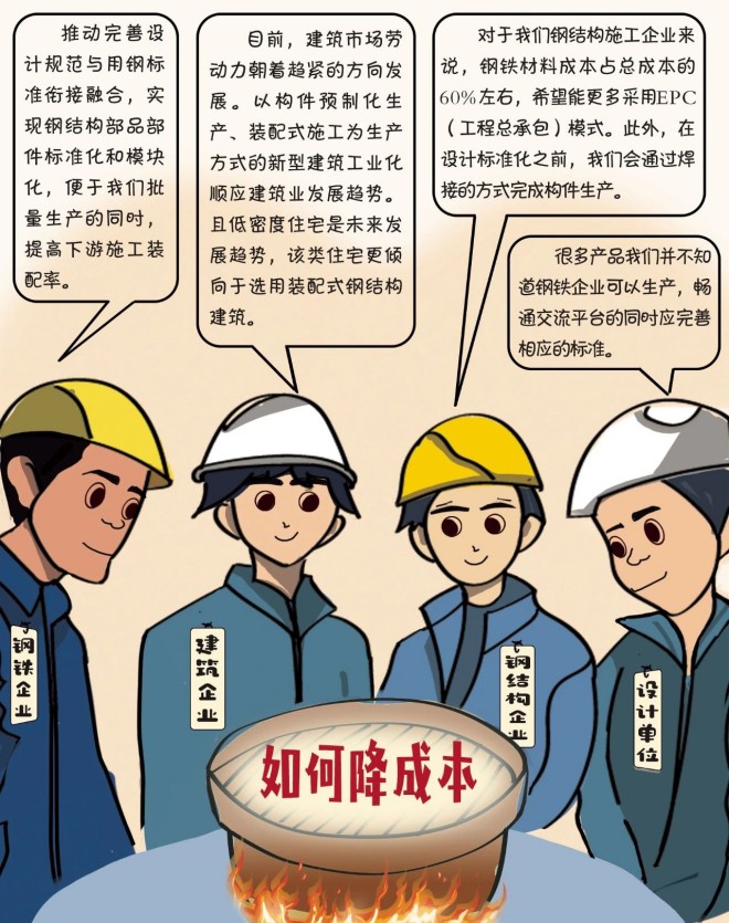 近日,在北京舉行的中央經濟工作會議明確,明年要培育綠色建筑等新增長點。作為綠色建筑代表之一的裝配式鋼結構建筑,產業鏈涉及多個行業,且各行業對鋼結構建筑的認識各有特色。對此,中國冶金報特推出《圍爐煮“鋼構”》欄目,主要以漫畫形式展示鋼結構建筑產業鏈上各方對熱點話題的觀點,敬請期待。