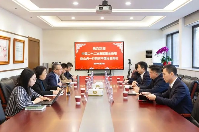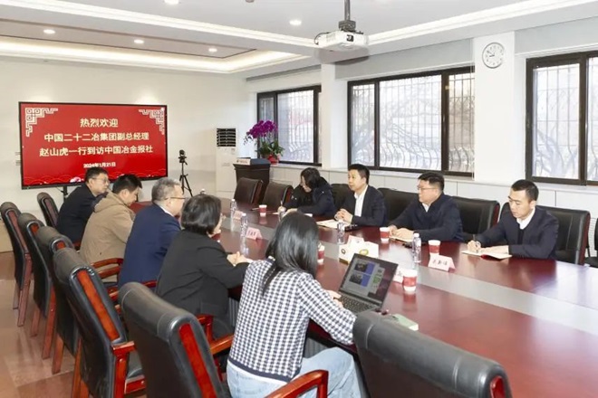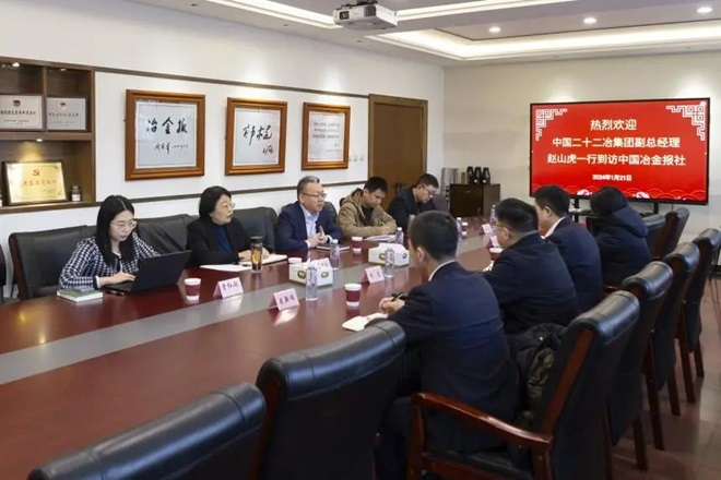 1月21日,中國二十二冶集團(以下簡稱“二十二冶”)副總經理趙山虎一行到訪中國冶金報社,與中國冶金報社副社長范鐵軍就行業發展趨勢以及雙方未來的合作內容進行交流。