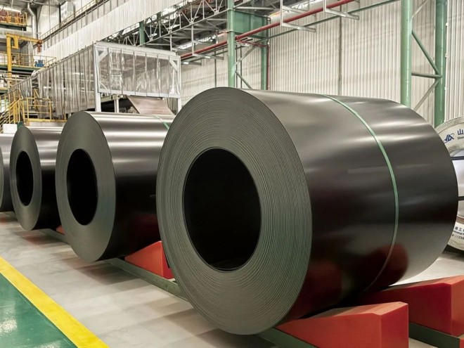 2024年12月16日,《中國冶金報(bào)》記者踏入晉鋼的超導(dǎo)電彩涂板生產(chǎn)車間,仿佛走進(jìn)了一個(gè)科技與藝術(shù)交織的夢幻殿堂。在這里,機(jī)械之美的韻律與銀白色鋅鎂鋁卷的金屬光澤交相輝映,共同編織出一幅令人嘆為觀止的畫面。一卷卷鋅鎂鋁卷整齊碼放在庫存區(qū),宛如銀色的波浪,蓄勢待發(fā)。經(jīng)過脫脂清洗、預(yù)處理、輥涂超導(dǎo)電油漆等一系列工序,這些普通的鋅鋁鎂基板仿佛被賦予了魔法,搖身一變,成為閃耀著黑色光澤的超導(dǎo)電彩涂板。