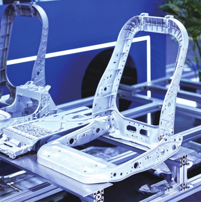 圖為博奧鎂鋁生產的鎂合金汽車座椅骨架。