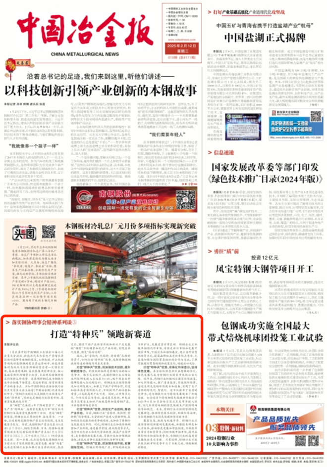 1月底召開的中國鋼鐵工業協會六屆七次會員大會指出,新能源汽車和家電產量增長將拉動對高牌號硅鋼的需求,工程機械、礦山機械等領域對高強鋼的需求量也將回升,新能源裝備對高端壓力容器用鋼的需求有一定增長空間,高品質特殊鋼、高端裝備用特種合金、核心基礎零部件用鋼等小批量、多品種關鍵鋼材需求仍保持上升趨勢。這表明特鋼已成為鋼鐵行業今后拓展下游需求、競逐新賽道、培育新質生產力的著力點。正如中國特鋼企業協會執行會長王文金在大會上接受《中國冶金報》記者采訪時所言:“特鋼行業的定位是鋼鐵行業新質生產力的‘特種兵’,同時也是鋼鐵行業轉型升級、高質量發展的先行軍。”
