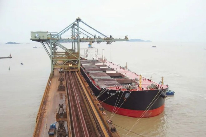 圖為中冶寶鋼保障馬跡山港春節(jié)期間的高效運(yùn)轉(zhuǎn)。(中冶寶鋼 供圖)