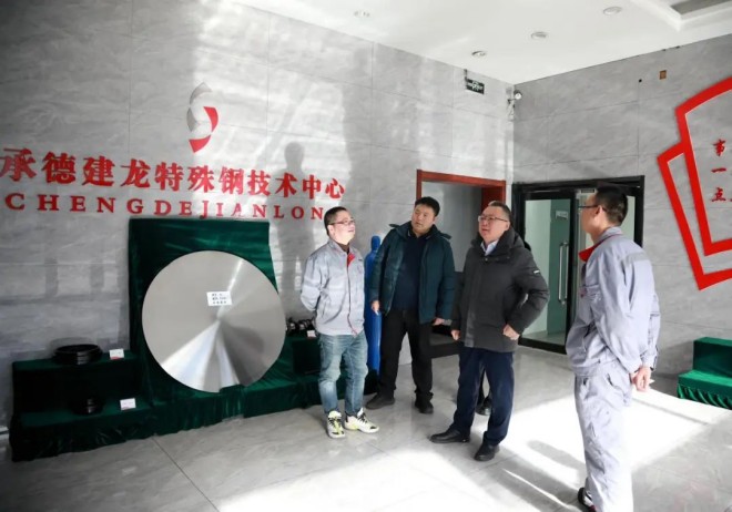 2025年2月12日,中國冶金報社調研團赴承德建龍特殊鋼有限公司(以下簡稱承德建龍)參觀調研,并與建龍集團副總裁兼承德建龍總經理王雪原、承德建龍常務副總經理凌仲秋、承德建龍副總經理冷永磊等圍繞鋼鐵行業發展趨勢、企業發展戰略、品牌塑造與企業宣傳等話題展開交流。