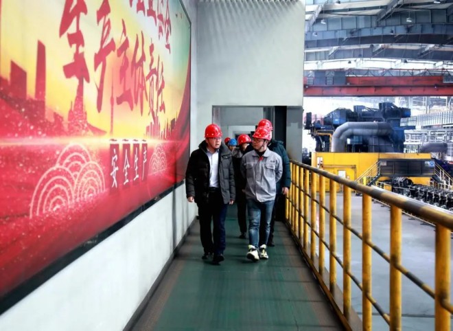 圖為中國冶金報社一行參觀無縫鋼管產線