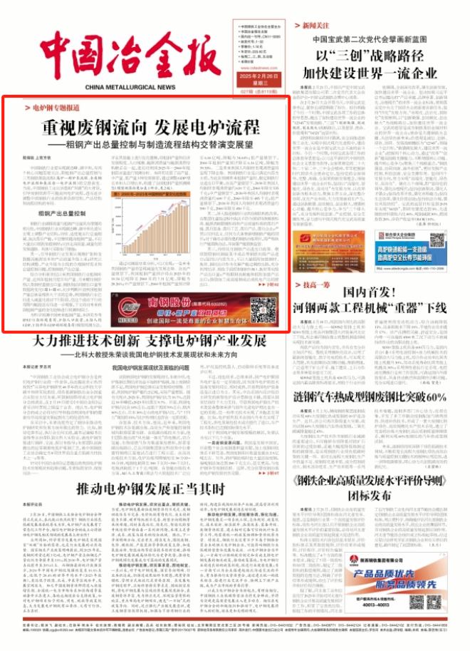 雖然三大流程的發展比例會不斷演變,但在廢鋼資源不斷增長的條件下,電爐短流程發展(包括直接還原鐵—電爐流程在內)這條路徑毫無疑問是正確的。要始終堅持戰略思維,根據鋼鐵行業發展的階段性特征,多角度、動態性、持續性地關注廢鋼產業和發展廢鋼—電爐流程相關的戰略研究(特別是要重視廢鋼的精細化分級分類以及在此基礎上的品種開發、成本控制研究),不斷深入思考、調整認識,使它符合發展戰略目標和中國鋼鐵工業的實際,真正推動鋼鐵行業高質量發展,適應“雙碳”發展方向,使之符合國家戰略的整體部署。