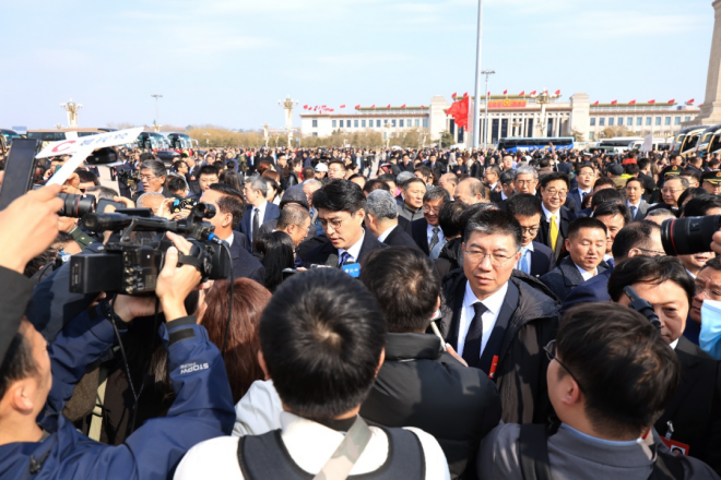 3月4日下午,天安門廣場上紅旗招展,東風來了,春天的腳步近了。伴隨著春的序曲,全國政協十四屆三次會議在人民大會堂開幕,2100多名全國政協委員帶著他們的提案再次齊聚北京,為國家發展建言獻策。