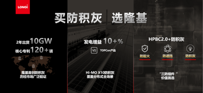 Hi-MO X10防積灰組件:防起火、防遮擋、防積灰,BC三防光伏組件“強上加強”
