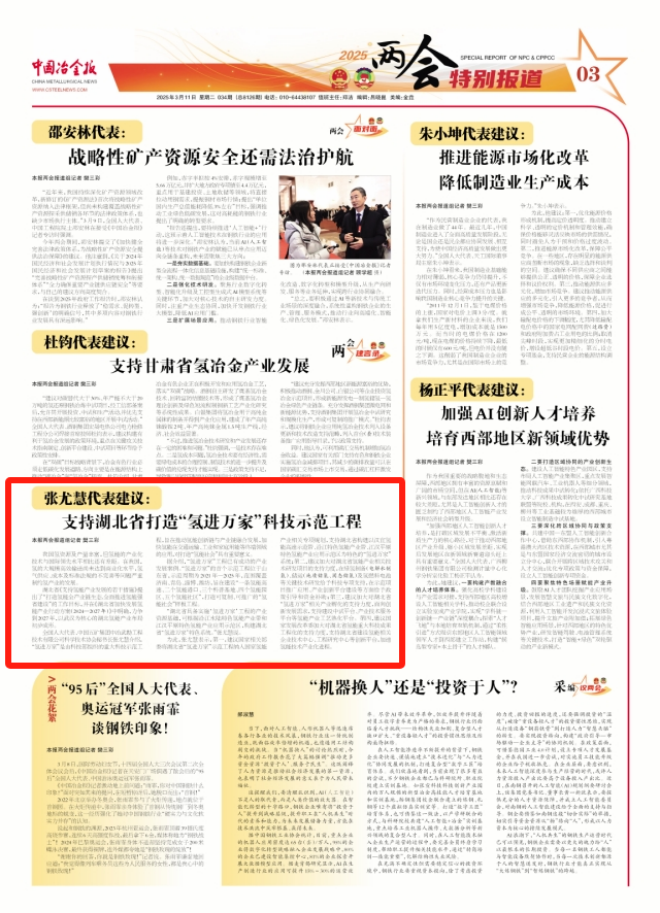 為此,張尤慧表示,第一,建議國家相關部委將湖北省“氫進萬家”示范工程納入國家氫能產業相關專項規劃,支持湖北省構建以漢宜氫能高速示范帶、沿江特色氫能產業帶、江漢平原特色氫能產業應用示范區為特色的“氫進萬家”系統;第二,建議加大對湖北省氫能產業相關技術研發項目的支持力度,在綠氫制備(電解水制氫)、儲運(地質儲氫、固態儲氫)及氫燃料電池等關鍵技術研發給予科技專項支持,在示范項目推廣應用、產業創新平臺建設等方面給予政策引導和資金補助;第三,建議加大對湖北省“氫進萬家”相關產業孵化的支持力度,面向創新發展需求,支持建設中試平臺、產業技術服務平臺等氫能產業工藝熟化平臺。第四,建議國家發展改革委加大對湖北省氫能重大科技成果工程化的支持力度,支持湖北省建設氫能相關企業技術中心、工程研究中心等創新平臺,加速氫能技術產業化進程。