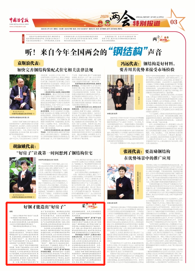 與此同時(shí),我們也要看到,在當(dāng)前的市場(chǎng)環(huán)境中,鋼結(jié)構(gòu)住宅的推廣和應(yīng)用還面臨著諸多挑戰(zhàn),如目前鋼結(jié)構(gòu)住宅的市場(chǎng)滲透率仍然較低,公眾對(duì)其的認(rèn)知度和接受度有待提高,現(xiàn)有法律法規(guī)體系對(duì)其的特殊設(shè)計(jì)要求、施工工藝和驗(yàn)收標(biāo)準(zhǔn)等缺乏明確規(guī)定等。毋庸置疑,好鋼才能造出“好房子”。鋼鐵行業(yè)可以通過(guò)技術(shù)創(chuàng)新、標(biāo)準(zhǔn)化設(shè)計(jì)、產(chǎn)業(yè)鏈協(xié)同、綠色生產(chǎn)等,在鋼結(jié)構(gòu)住宅的推廣應(yīng)用中大有作為。