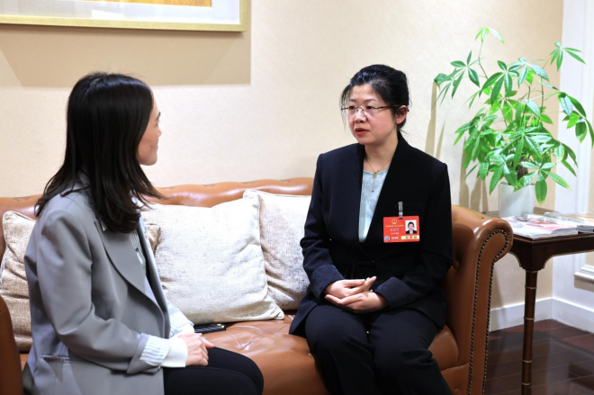 圖為王艾竹接受中國冶金報社兩會報道組記者采訪