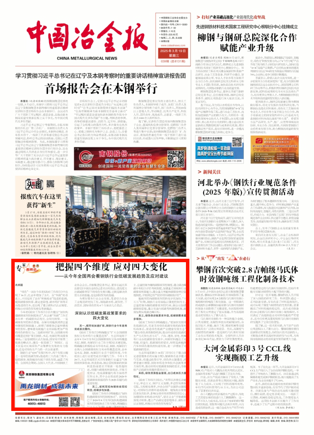 鋼鐵行業“1231”發展目標中,兩個發展主題之一是綠色低碳發展;推進的三大改造工程中,超低排放、極致能效均屬于綠色發展,涵蓋了兩項。全國兩會期間,全國人大代表,中國鋼鐵工業協會會長,首鋼集團黨委書記、董事長趙民革在接受《中國冶金報》記者采訪時指出,要高度關注碳減排背景下的綠色發展問題,它既是解決供需關系的基礎,也是國際貿易的基礎。