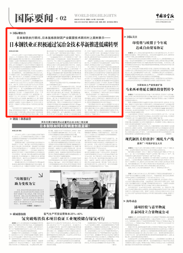 3月13日,在第十五屆中日鋼鐵業環保節能專家交流會上,日本制鐵執行顧問、日本氫煉鐵財團產業聯盟(GREINS項目)技術顧問村上英樹在做題為《日本鋼鐵工業碳中和轉型的技術挑戰》的報告時表示,當前日本鋼鐵業正通過氫冶金等技術革新推動行業轉型,由日本新能源與工業技術發展組織(NEDO)資助的COURSE50項目和GREINS(煉鋼綠色創新)項目,正逐步發展成為這場轉型的動力引擎。