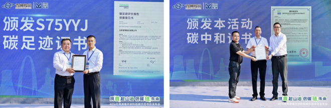 活動中,首鋼股份首席技術專家杜斌發表《首鋼股份低碳發展戰略與可持續發展探索》專題演講。挪威船級社相關負責人為新一代酸洗低碳產品頒發碳足跡證書。中國質量認證中心相關負責人為此次活動頒發碳中和證書。