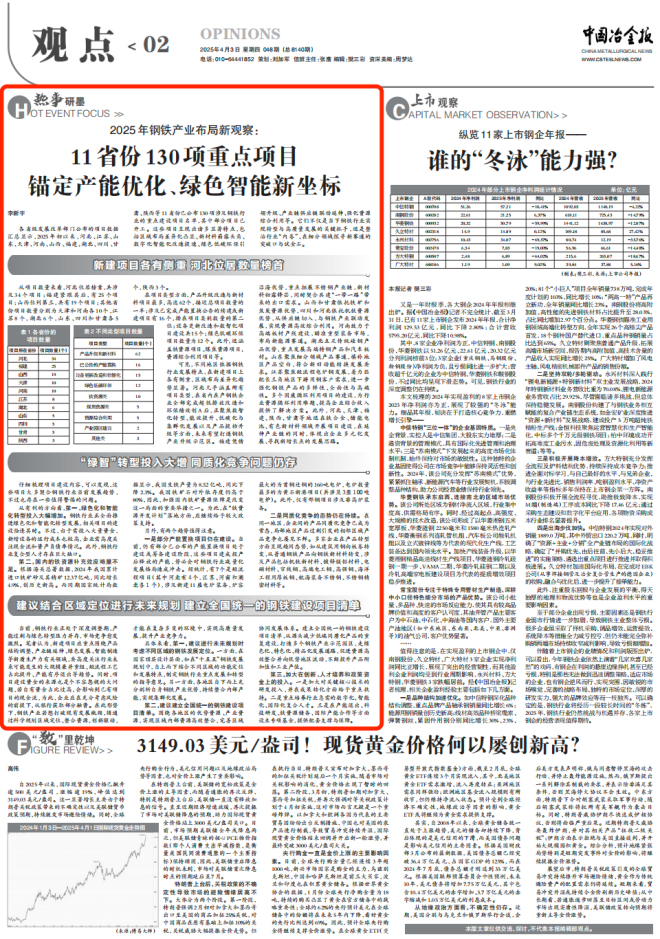 各省級發(fā)展改革部門公布的項目數(shù)據(jù)匯總顯示,2025年初以來,河北、江蘇、山東、天津、河南、山西、福建、湖北、四川、甘肅、陜西等11省份已公布130項涉及鋼鐵行業(yè)的重點建設(shè)項目名單,其中部分項目已開工。這些項目呈現(xiàn)出諸多顯著特點,包括區(qū)域布局差異化凸顯、新材料嶄露頭角、數(shù)字化智能化改造提速、綠色低碳環(huán)保引領(lǐng)升級、產(chǎn)業(yè)鏈供應鏈聯(lián)動延伸、強化資源綜合利用等。它們不僅是當下鋼鐵行業(yè)實現(xiàn)轉(zhuǎn)型與高質(zhì)量發(fā)展的關(guān)鍵抓手,還是整治行業(yè)“內(nèi)卷”、在細分領(lǐng)域探尋新賽道的突破口與試金石。