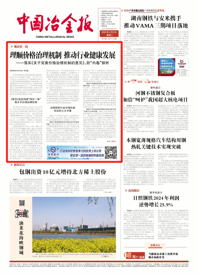 鋼鐵行業(yè)價格治理機制的穩(wěn)定與完善,對行業(yè)自身及宏觀經(jīng)濟的高質(zhì)量發(fā)展意義重大。為應對當前行業(yè)形勢的挑戰(zhàn),鋼鐵行業(yè)應積極響應《意見》精神,健全市場價格形成、引導、調(diào)控、監(jiān)管機制,提升資源配置效率,推動產(chǎn)業(yè)向綠色低碳轉(zhuǎn)型,規(guī)范市場價格行為,逐步化解現(xiàn)存矛盾,實現(xiàn)價格機制的優(yōu)化與完善,推動鋼鐵行業(yè)邁向高質(zhì)量發(fā)展新階段,為國民經(jīng)濟的穩(wěn)健前行持續(xù)注入強勁動力。(賀宗春)