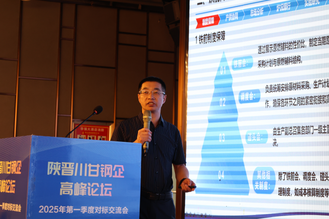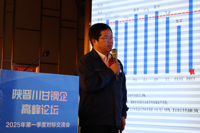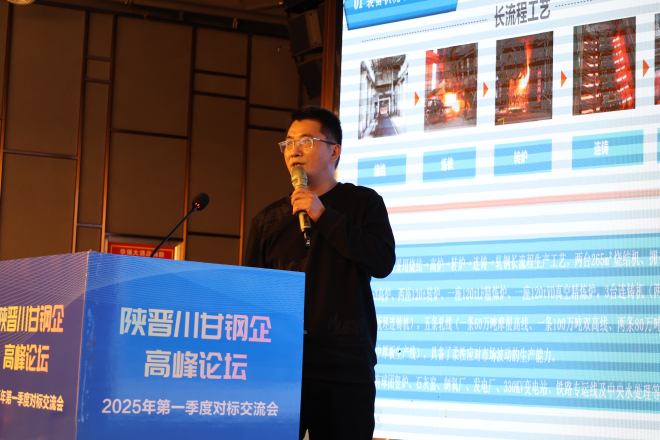 會上,晉南鋼鐵集團生產副總裁付衛(wèi)兵作 2025 年第一季度對標工作報告,對42項指標進行分析。建龍鋼鐵集團技術中心副主任呂國明分享推動鐵前產供一體化降低鐵水成本案例;晉南鋼鐵集團動力處處長常民分享綠色低碳節(jié)能改造項目案例;漢鋼公司煉鋼廠主任工程師韓建林分享產品轉型實踐案例;晉城鋼鐵集團生產副總經理陳超峰分享鐵前一體化綜合降本案例;我的鋼鐵網首席分析師汪建華做2025 年第二季度鋼鐵市場形勢分析報告;江蘇南方節(jié)能公司總經理魏海峰分享軋鋼加熱爐節(jié)能降碳技術應用;東銘綠能商務部經理孫海艇分享東銘綠能節(jié)能、降本、減碳的新材料、新技術、新應用;京東工業(yè)銷售總監(jiān)馬利利分享數字化采購平臺方案建議。