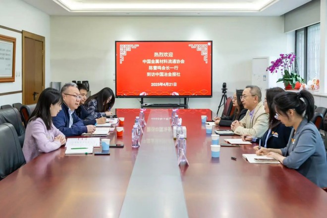 4月21日,中國(guó)金屬材料流通協(xié)會(huì)(以下簡(jiǎn)稱“中金協(xié)”)黨支部書記、執(zhí)行會(huì)長(zhǎng)陳雷鳴一行到訪中國(guó)冶金報(bào)社,與中國(guó)冶金報(bào)社副社長(zhǎng)范鐵軍就鋼鐵流通領(lǐng)域宣傳工作、雙方未來(lái)合作等內(nèi)容進(jìn)行了座談交流。
